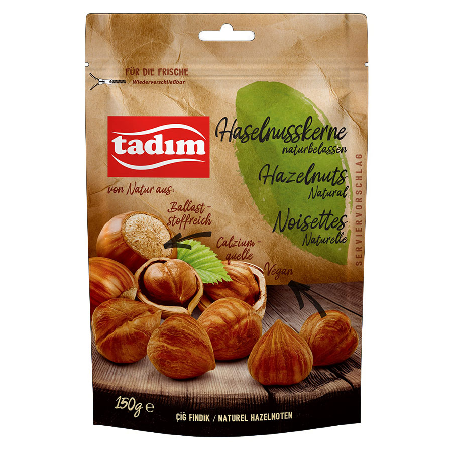 Aromatisch und pur: Tadım Haselnusskerne naturbelassen – mild-nussig und vielseitig einsetzbar.