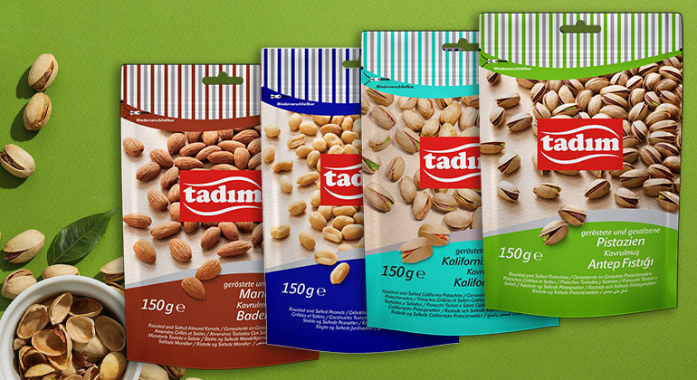 Tadım Nüsse sind ein starker Impulsartikel für das Snackregal – ideal für Supermarkt, Kiosk und Tankstelle. Wir liefern B2B und unterstützen Sie bei Sortimentsauswahl und Nachlieferung.