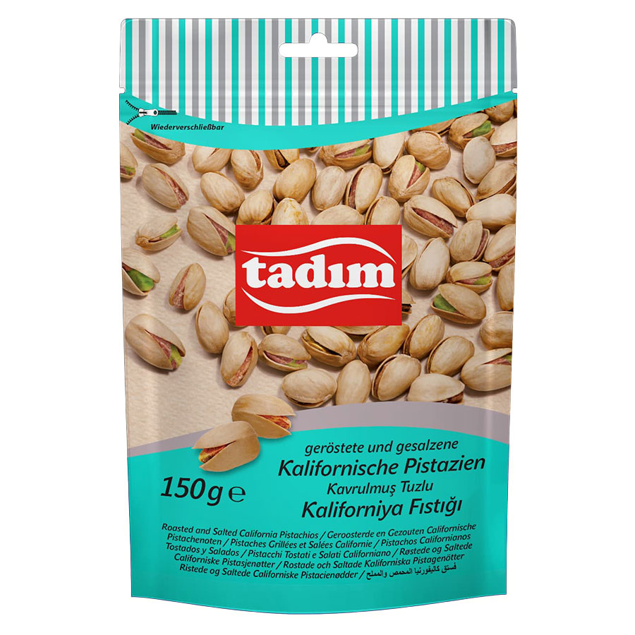 Knackig und aromatisch: Tadım Kalifornische Pistazien geröstet & gesalzen – ein Premium-Klassiker für das Nussregal.