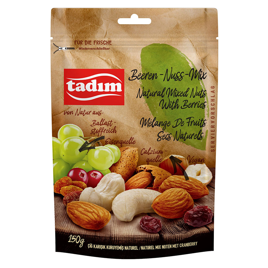 Fruchtig und nussig zugleich: Tadım Beeren-Nuss-Mix naturbelassen – die perfekte Mischung für den Snack zwischendurch.